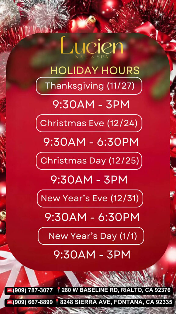 Step into a world of ultimate relaxation and sophisticated luxury at Lucien Nail & Spa, the best nail salon spa in Rialto, CA 92376. Our meticulous treatments and tranquil atmosphere are crafted to offer you an unparalleled experience of pampering and rejuvenation. Each visit promises to be a revitalizing journey, where our dedicated team ensures you leave feeling refreshed and renewed.